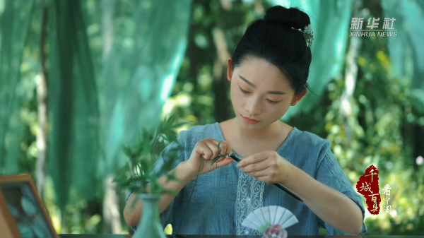 缠花的制作充满了手艺人的温度,首先需设计开模,再用丝线与纸坯、铜丝结合,经手工缠绕组装成精巧作品,常融入染色、掐丝等工艺。丝线在手中穿梭,一圈缠一圈,一线绕一丝,每一次制作过程都凝聚着匠人的心血。